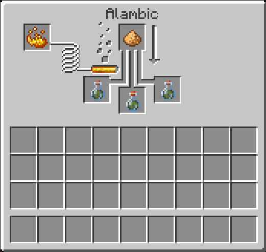 Dans cet alambic, ajoutez une poudre de blaze dans le compartiment du carburant, et une poudre lumineuse dans le compartiment des ingrédients.