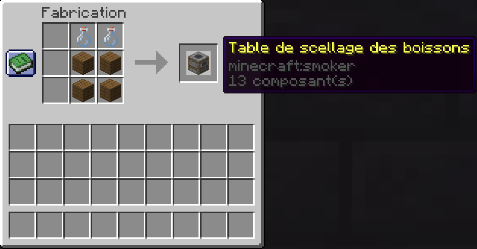 Le craft de la table de scellage est disponible dans les recettes Minecraft.