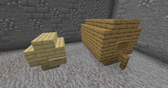 Petit tonneau : 8 escaliers du même bois + une pancarte avec écrit "barrel" (à placer en dernier).