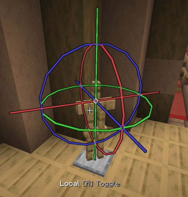 De nouvelles barres apparaissent correspondant aux axes. Vous pouvez déplacer le porte-armure via ces axes en visant l'une de ces barres virtuelle puis en faisant un clic-droit.